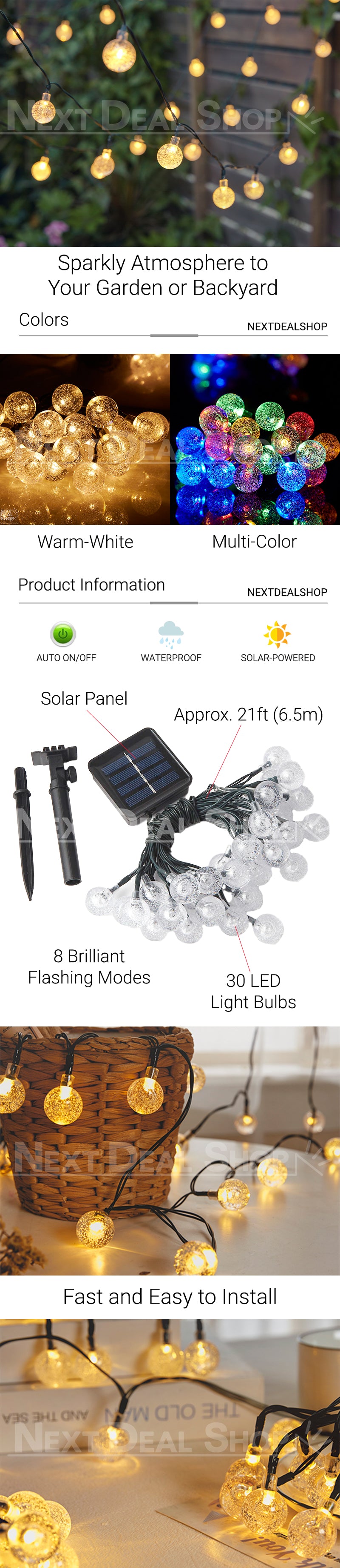 1 x bubble string light, 1 x solar panel, 1 x stake |