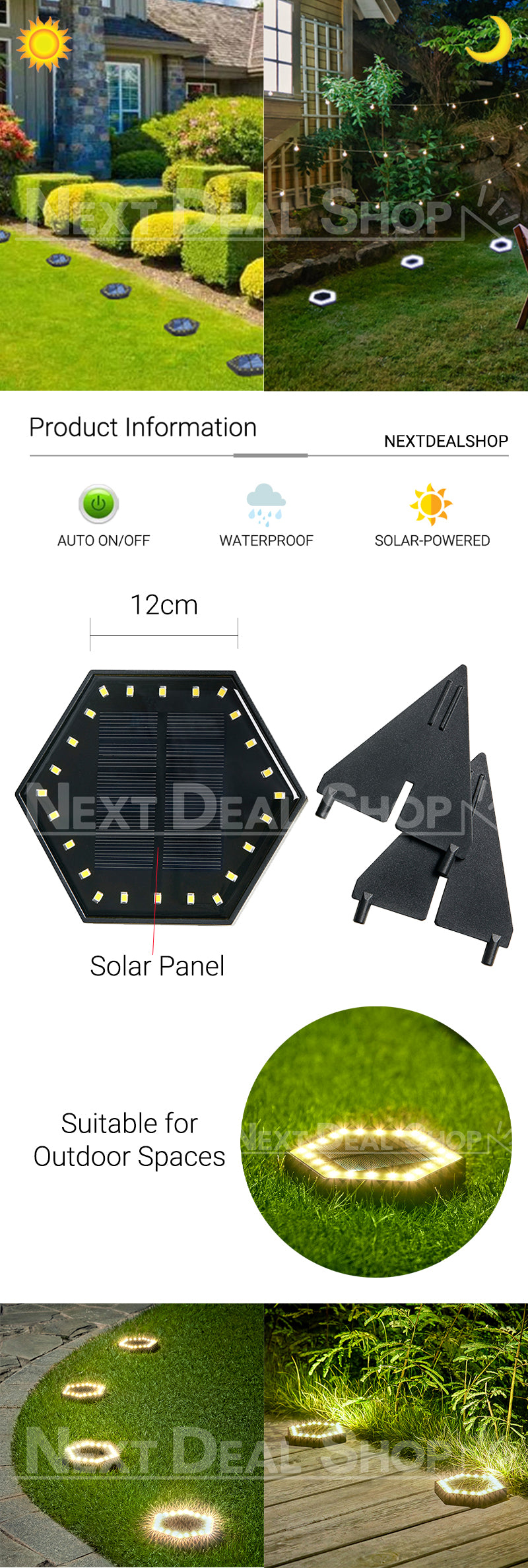 | Package Components | 1 x Solar-Powered Hexagon Ground Light |